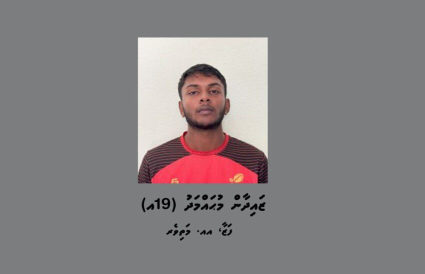 އއ. މަތިވެރީގައި ލޯބިވެރިޔާ އަށް ބިރުދައްކައި ބްލެކް މެއިލްކުރި މައްސަލައިގައި ހައްޔަރުކުރި މަތިވެރި ޕޮލިސް ސްޓޭޝަންގައި މަސައްކަތް ކުރި ރެކްރޫޓް ފުލުހެއް ކަމަށްވާ އެ ރަށު ފަޒާ، ޒައިދާން މުހައްމަދު (19އ) އެވެ.