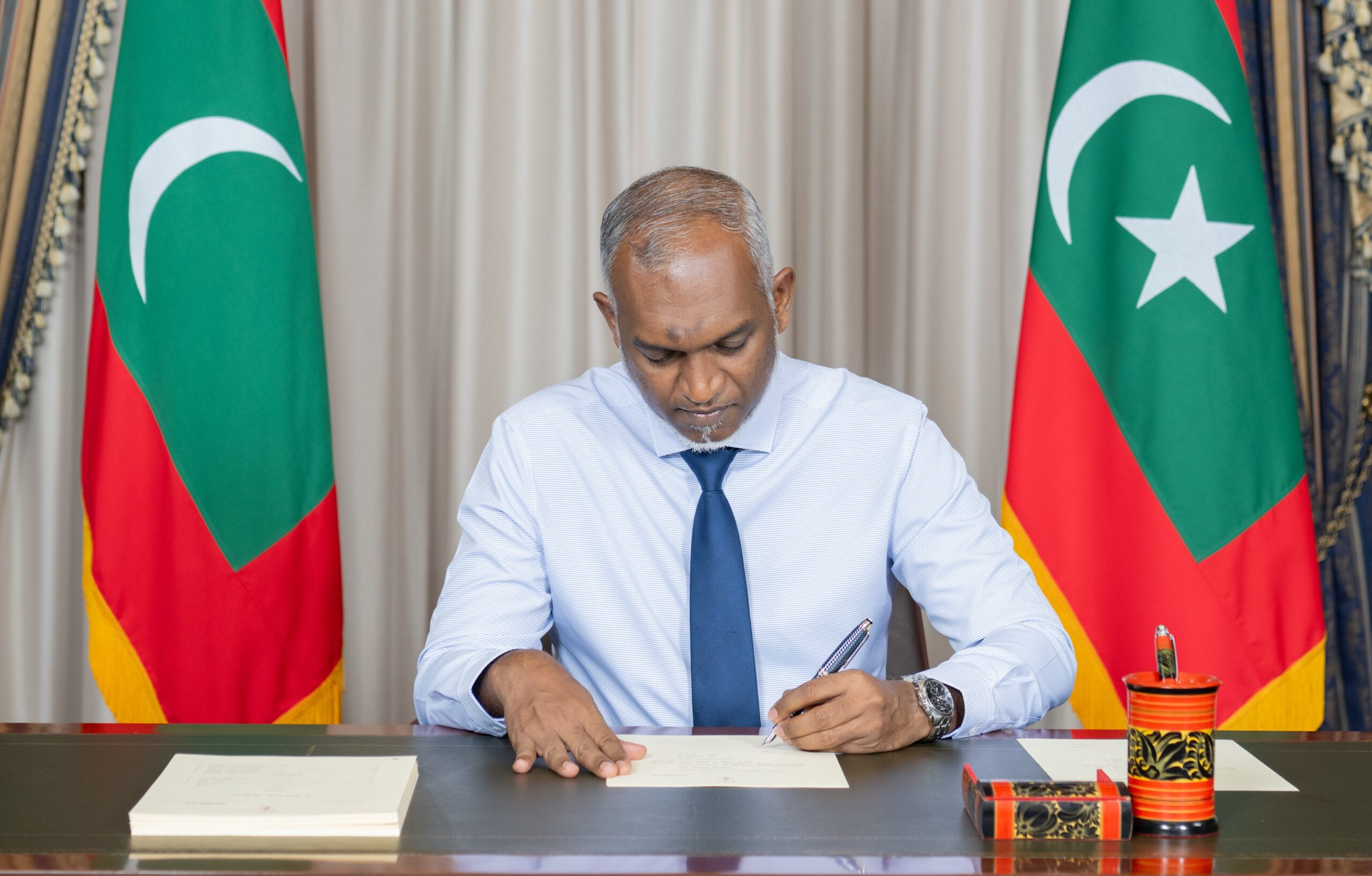 ޤާނޫނު ނަންބަރު 30/2024، ދައުލަތުގެ ފިސްކަލް ޒިންމާގެ ޤާނޫނަށް 1 ވަނަ އިޞްލާޙު ގެނައުމުގެ ބިލު ރައީސުލްޖުމްހޫރިއްޔާ ޑޮކްޓަރ މުޙައްމަދު މުޢިއްޒު ތަޞްދީޤު ކުރައްވައިފިއެވެ.