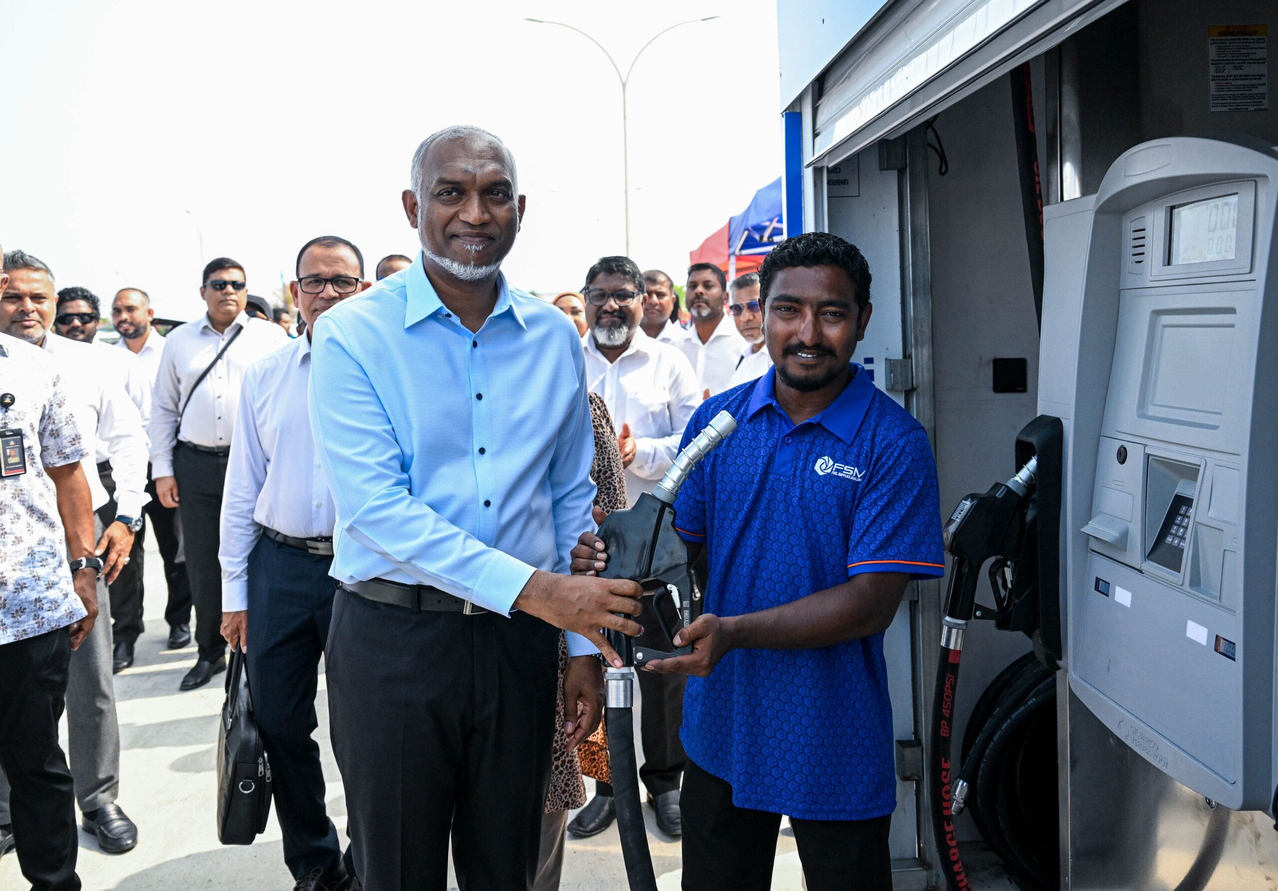 މަސްވެރިންނަށް ހެޔޮއަގުގައި ތެޔޮ ފޯރުކޮށްދިނުމަށް އަމާޒުކޮށް ޤާއިމުކުރި ފުރަތަމަ ފިއުލް ސްކިޑް ރައީސުލްޖުމްހޫރިއްޔާ ޑޮކްޓަރ މުޙައްމަދު މުޢިއްޒު، ރ. ދުވާފަރުގައި މިއަދު ހުޅުއްވައިދެއްވައިފިއެވެ.