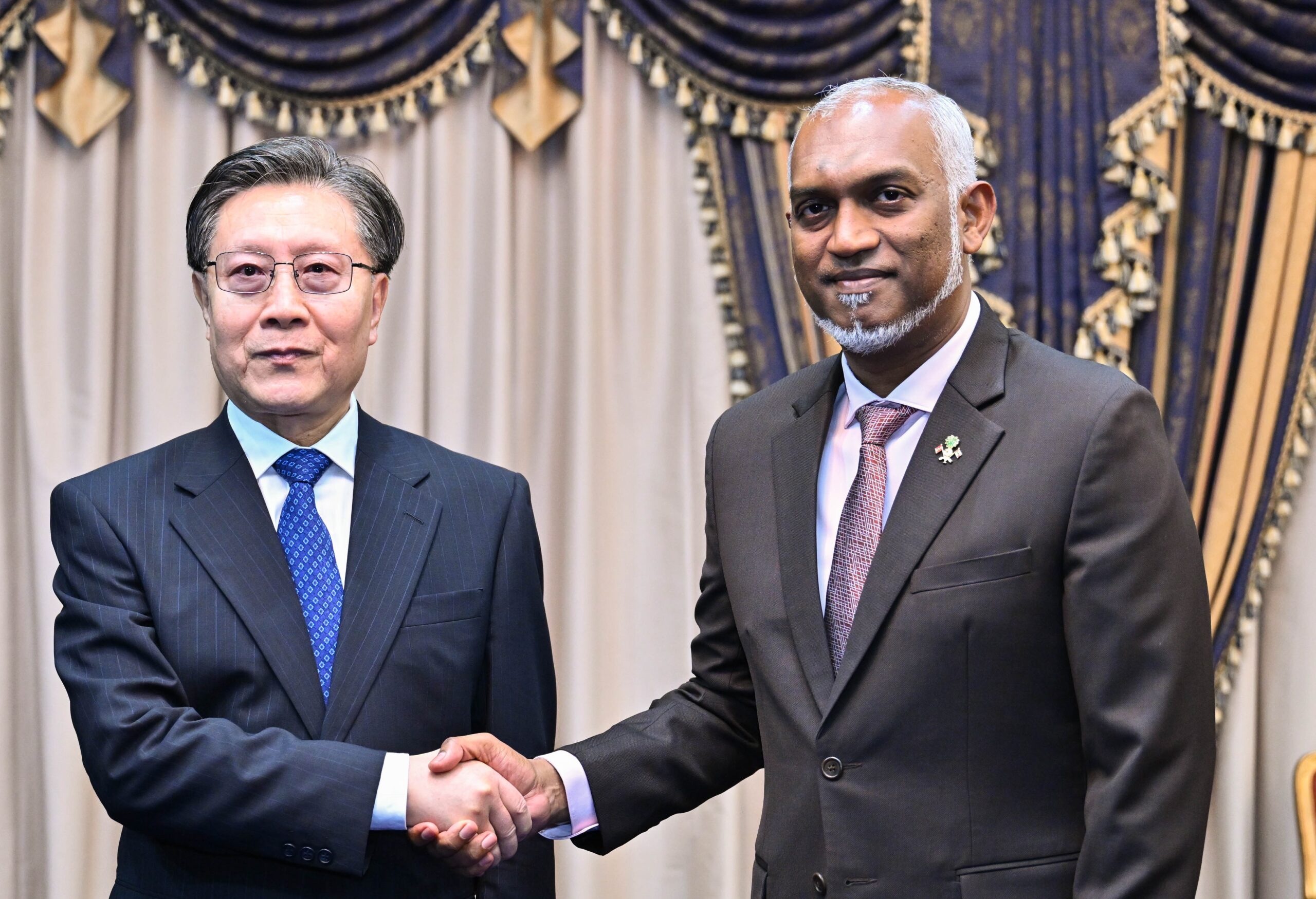 ޗައިނާގެ ނޭޝަނަލް ޕީޕަލްސް ކޮންގްރެސްގެ 14 ވަނަ ސްޓޭންޑިންގ ކޮމިޓީގެ ވައިސް ޗެއަރމަން، މިސްޓަރ ވޮންގް ޑޮންގްމިން، ރައީސުލްޖުމްހޫރިއްޔާ ޑޮކްޓަރ މުޙައްމަދު މުޢިއްޒުގެ އަރިހަށް އިޙްތިރާމުގެ ޒިޔާރަތެއް ކުރައްވައިފިއެވެ.