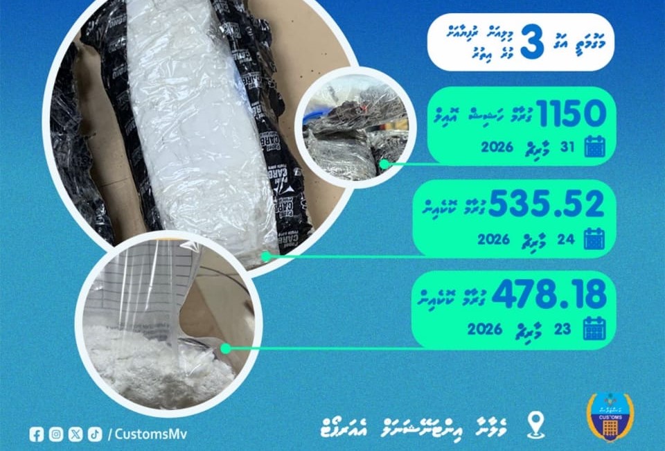 ދެ ކިލޯއަށްވުރެން ގިނަ މަސްތުވާތަކެތި ރާއްޖެއަށް އެތެރެކުރި ދެމީހުން ބަންދު ކޮށްފިއެވެ.