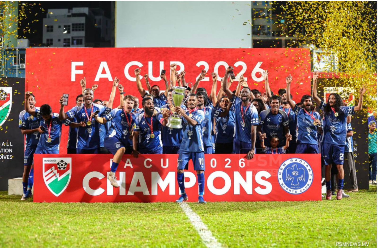 3-0 ގެ ނަތީޖާއަކުން ޓީސީ ސްޕޯޓްސް ކްލަބް ބަލިކޮށް، ނިއު ރޭޑިއަންޓް ސްޕޯޓްސް ކްލަބުން އެފްއޭ ކަޕް ފުޓްބޯޅަ މުބާރާތުގެ ޗެމްޕިއަންކަން 13 ވަނަ ފަހަރަށް ހޯދައިފި އެވެ. ފާހަގަ ކޮށްލެވޭ ކަމަކީ ނިއު 2020 އާއި 2022 ވަނަ އަހަރު ސަސްޕެންޝަންގައި އޮތުމަށް ފަހު، އެނބުރި އައިސް ފުުރަތަމަ ފަހަރަށް ކުޅުނު ފަހަރު ބައިކޮޅަށް ގޯލެއް ވެސް ނުވަދެ ޗެމްޕިއަންކަން ހޯދި ކަމެވެ.
